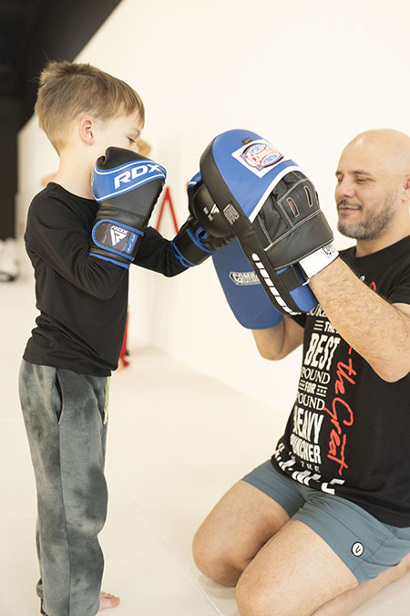 Siyar Bahadurzada teaching a boy how to punch.